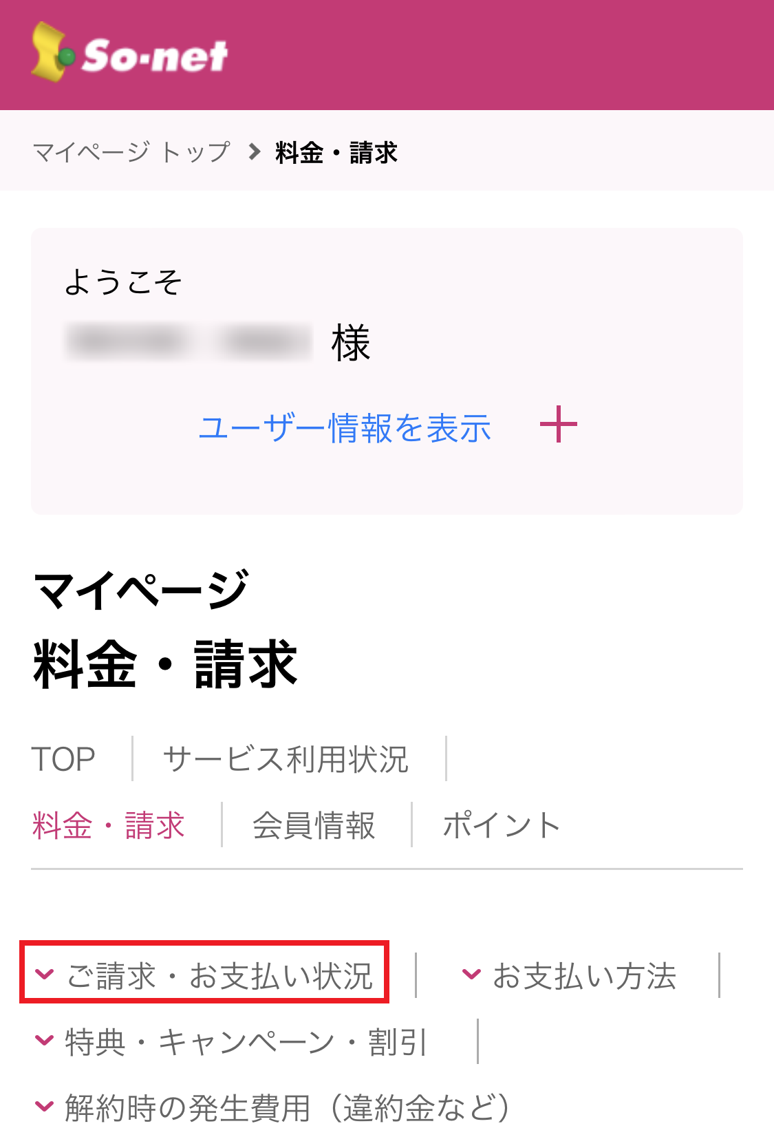 毎月のご請求料金は、マイページ、So-net 会員アプリよりご確認いただけます。