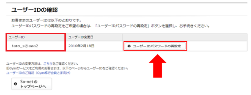 件名:【So-net】ユーザーID 確認、ユーザーIDパスワード再設定のご案内