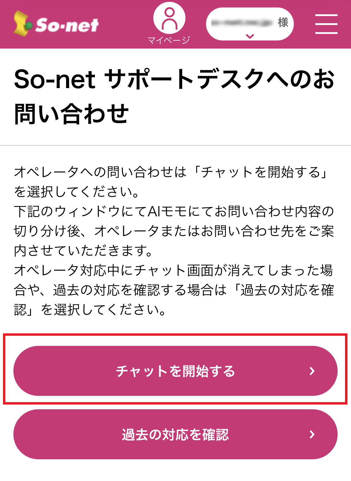 So-net 会員アプリからの問い合わせ方法を知りたい