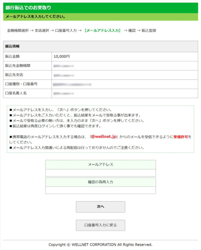 お振り込み完了などのお知らせについては次のページをご確認ください。