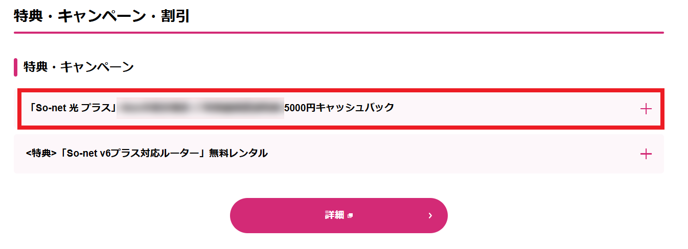 当ページにてご確認いただけるキャッシュバックは、So-net で適用されているキャンペーンとなります。