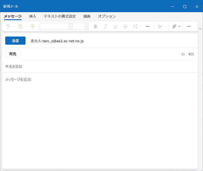 ・「メッセージを追加」:メールの本文を入力※1 ここでは送受信のテストのため、ご自身のメールアドレスをご入力ください。