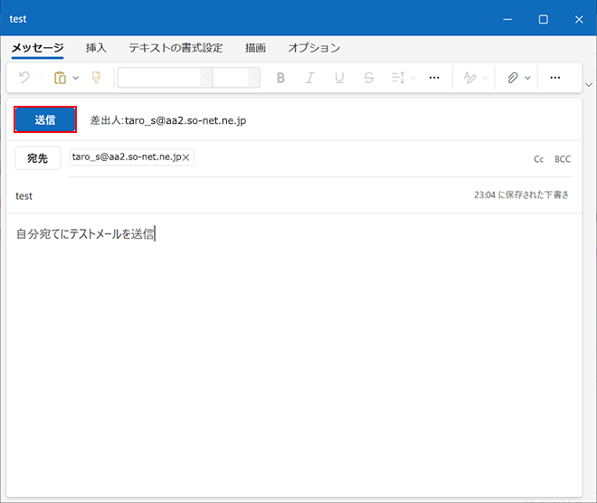例としてご自身宛てにメールを送受信する方法をご案内しています。
