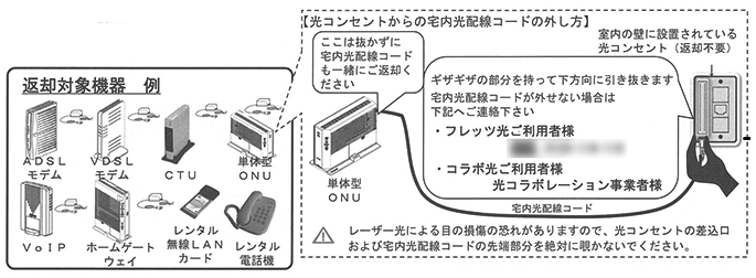 工事の際に、工事担当者が NTTレンタル機器、および付属品を回収いたします。