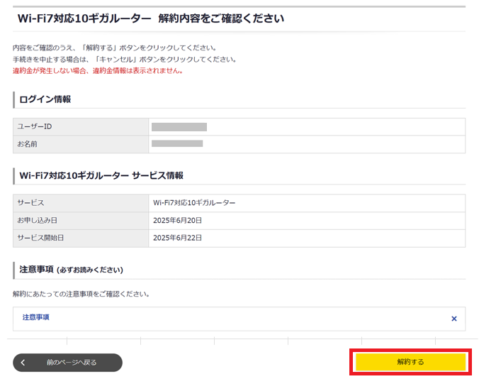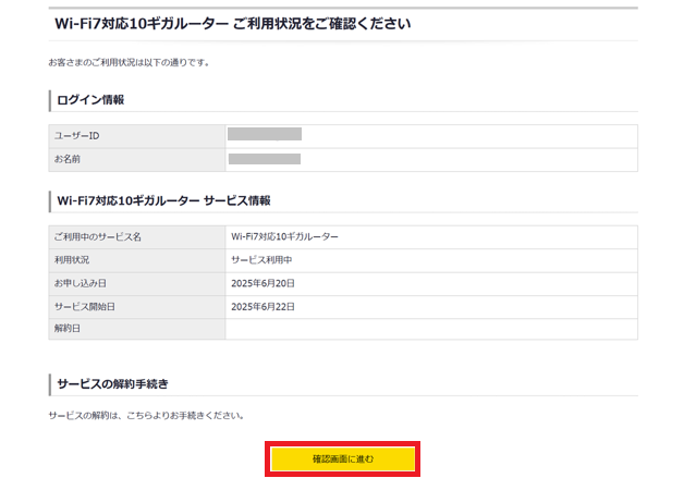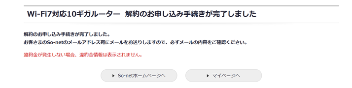 以上で、Wi-Fi7対応10ギガルーターの解約手続きは完了です。「Wi-Fi7対応10ギガルーター」を返却したい