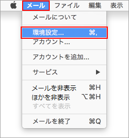 2/7 メニューバーの「メール」から「環境設定...」を選択します