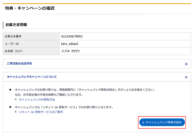 【参考】キャッシュバックの受け取り手順について