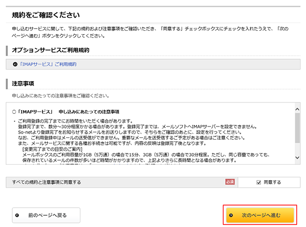 3/4 「IMAPサービス 申込確認」画面の内容を確認します