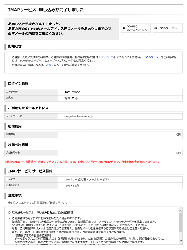 4/4 「IMAPサービス 申込手続き完了」画面が表示され、手続きが完了します