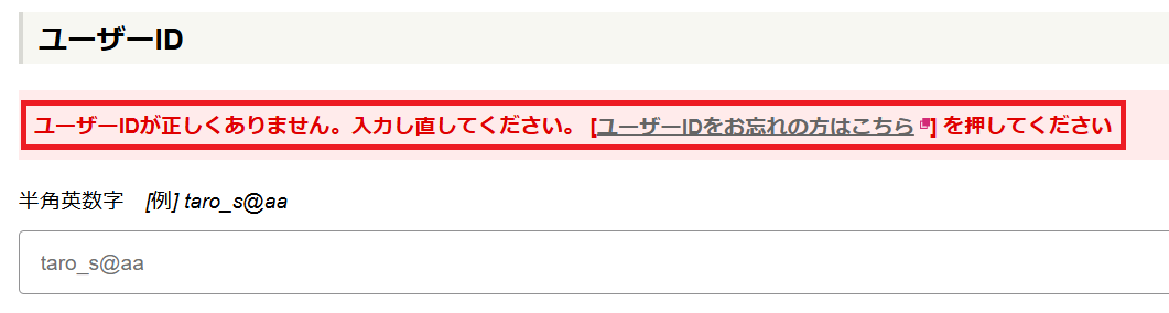 「ユーザーIDが正しくありません」と表示される場合
