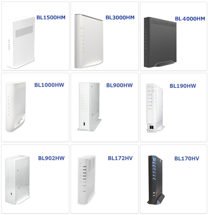無線 LAN レンタルサービスご利用中で、下記ホームゲートウェイをご利用の場合、ホームゲートウェイ本体の無線機能 (内蔵無線LAN) をご利用の場合もございます。